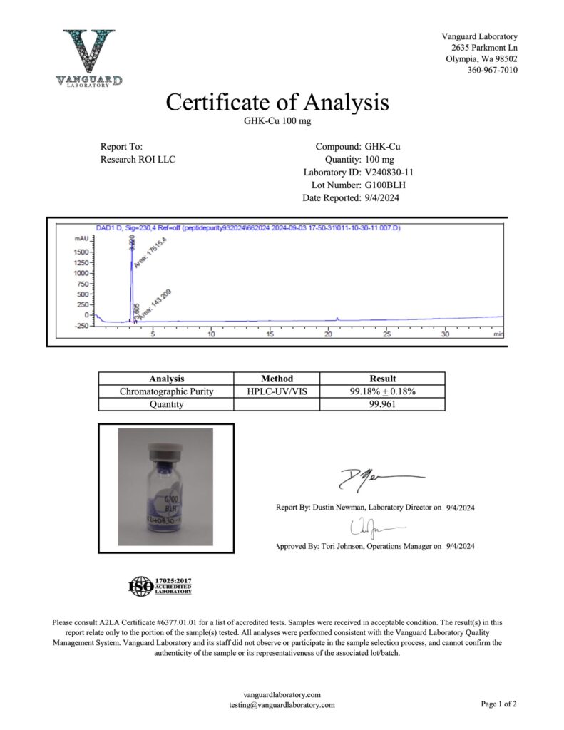 GHK-cu Copper Tri-Peptide-1 Lyophilized Powder 38mg/100mg | 99.7%
